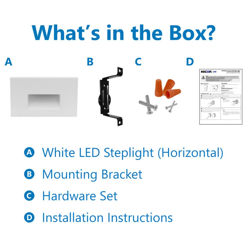 SKU: STW11203KHWH Categories: Landscape Lighting, Outdoor Lighting, Stair & Step Lights Tags: Horizontal, Indoor, Landscape, LED, Light, Lighting, Location, Nicor, Outdoor, Path, Pathway, Rated, Stair, Stairs, Stairway, Step, Stw, Way, Wet