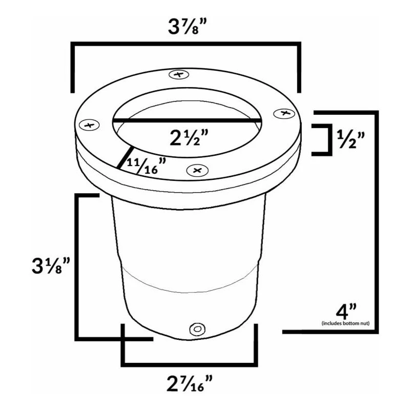 AQL’s newest addition to its in-ground lighting fixtures line up is this 3.5″ mini low voltage in ground well light built from solid composite material making it more durable than aluminum. This in ground light fixture offers multiple finishes for the visible part of the fixture turning your in-ground well light into a designer fixture adding uniqueness to any landscaping job. AQL is proud to use commercial grade heavy materials for the construction of this heavy duty in ground lighting fixture. Our mini low voltage fixture uses an MR16 bulb greatly reducing your energy bill vs 120v bulb (bulb not included). Included with each fixture is a tempered glass lens, designed to both protect your lamping and keep the internal compartment moisture free. AQL’s low voltage in ground well lights have been designed for installation either directly in the dirt or for long lasting applications directly in concrete. We recommend using our ABS composite concrete sleeve for pathway or concrete applications (sold separately). We have wired this fixture with a 3 wire cable enabling it to also be used with 120 volts but we highly recommend sticking to 12V input in areas where water is abundant for safety reasons.