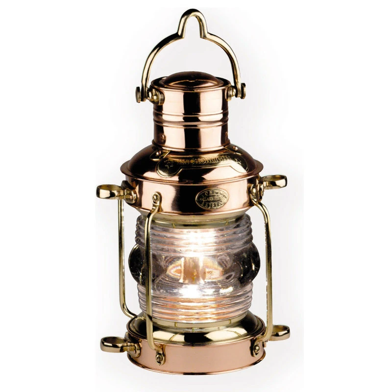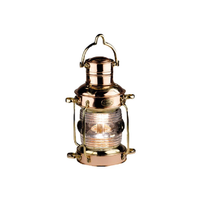 Brighten your home with the sleek Anchor Lamp. Featuring a cast handle, cast slots, molded name plaques, and a kerosene burner, this brass and copper lamp has a polished, vintage look that works well in both indoor and outdoor spaces. Set it on a patio table or mantel to create a soft glow.