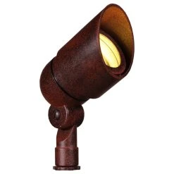 (4) BPL-LED-101-RST Cast Aluminum Powder Coated Rust Finish Low Voltage Landscape Spot Up Light. Cast Aluminum Construction, Tempered, and Heat Resistant Glass, Wire Length: 18″ (#18). 1/2″ female NPT ground spike included.