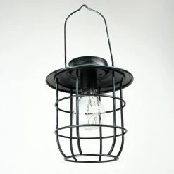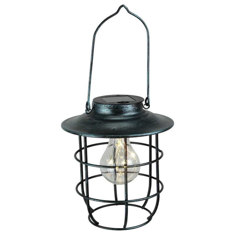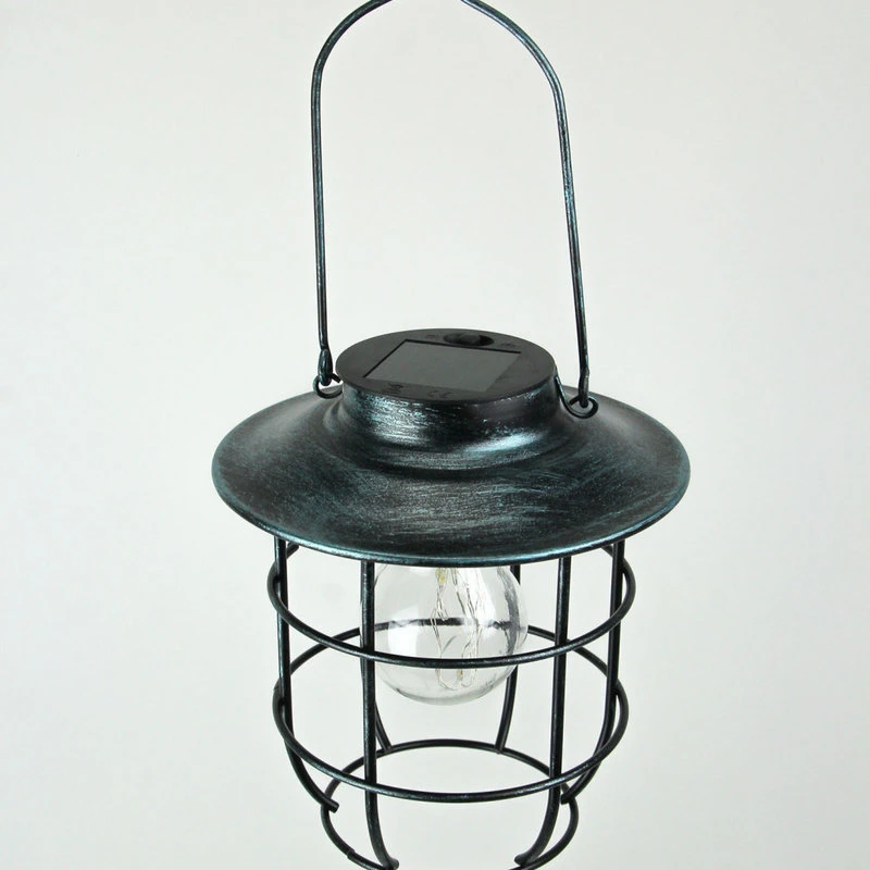 This solar lantern has a cool antique retro look with its metal construction, fairy light filled bulb and rustic finish. Designed like a vintage fisherman’s lamp, it brings ambient lighting to any outdoor area. The 4 inch drop hanger at the top makes it easy to transport or hang from a tree, post, or garden stake. Use it on your back patio, in your garden, or near your front door. It charges in the sun and automatically turns on or off at dawn and dusk. Hang it from a patio umbrella to set the mood with soft ambient lighting overhead. Let this 7 inch high, 6.25-inch diameter beacon of light fill your outdoor space with a cozy and inviting glow.