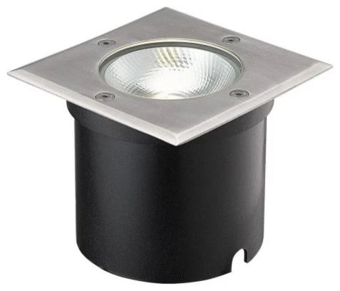 Outdoor 1X7W LED lighting square inground fixture with a stainless steel finish framework, for outdoor use.