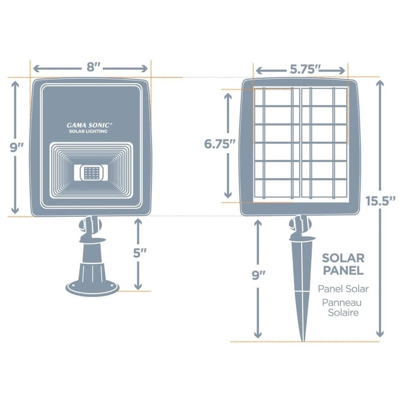 - Solar panel may be installed on fixture or detached and placed up to 12 feet away