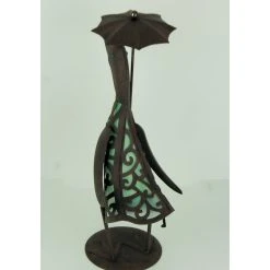 When the night falls and the summer showers arrive, this delightful duck is ready. Featuring a decorative metalwork body that emits a soft glow in blue or green, the duck brings a touch of light to the patio, yard or garden. It is made of metal in a lovely brown finish, and the LED light is solar powered, so it charges by day and automatically lights up after dark. This 20.25 inch high, 9 inch long, 6.5 inch wide solar duck statue is a stunning piece for adding an aesthetic charm to any outdoor area.