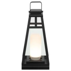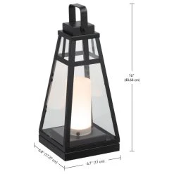 An outdoor lantern, one of the most popular choices for outdoor lighting, is designed to add a touch of traditional ambiance to your home. The Novogratz x Globe Diana Outdoor Lantern takes this look and pushes it one step further. Utilizing a matte black finish with a frosted inner shade, it maintains a vintage charm while sleek craftsmanship leads to unique details that add a modern flair. The versatile 16-inch size lets you bring your lantern anywhere you want, making a statement along the way. The long-lasting LED provides a warm ambient light and uses very little energy to prolong your battery life. The portability, battery power, metal handle, and real glass shade make this lantern ideal for use anywhere you need extra light – inside around the house or outside on all your outdoor adventures. Decorate with the Novogratz and Globe Electric – lighting made easy.