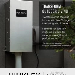 - Offers low voltage semi-permanent solutions for unique areas such as pergolas when paired with low voltage Hinkley transformer