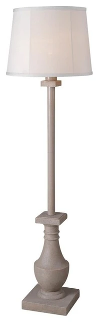 A classical form in a modern, light Coquina finish, Patio’s timeless urn Silhouette is Softened by a Cream Tapered Drum Shade.