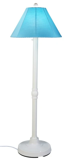 San Juan Floor Lamp 38101 with 2″ white body and canvas Aruba Sunbrella shade fabric.