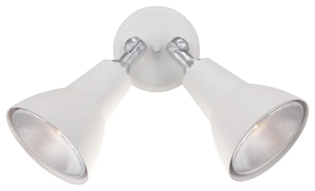 Two-light, Black finish adjustable outdoor spotlight. Requires 2 R40 or PAR38 150w Max Bulbs