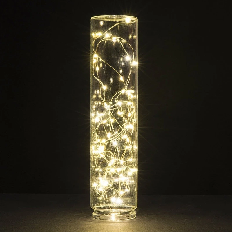 Bring a starry ambiance to any space with these energy efficient LED string lights. Cool to the touch for hours, they’re perfect on plants and furniture. The copper string easily bends for just the effect you want! Set of 2 string lights included.