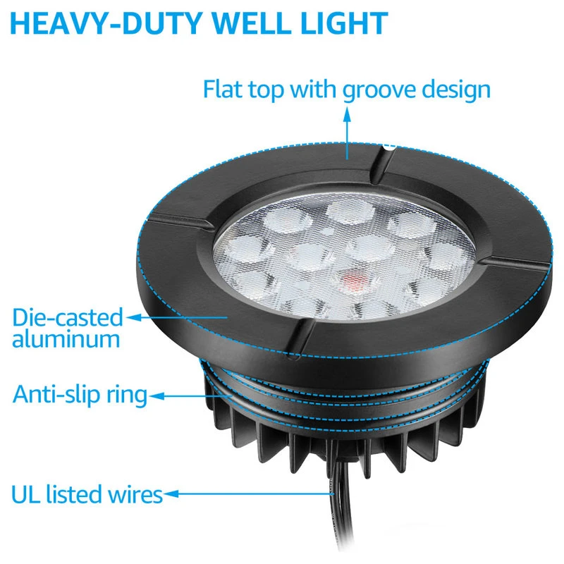 - Made of die-casted aluminum, this LED well light has excellent corrosion resistance and heat dissipation, extending the lifespan to up to 50,000hrs.
