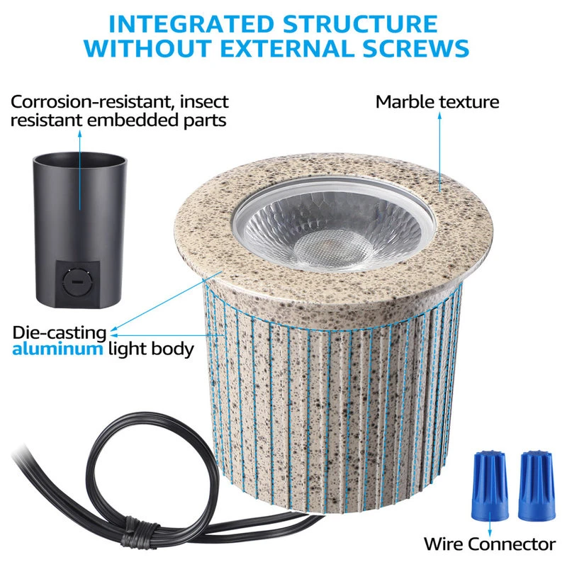 The die-casted aluminum of our well light gives it excellent heat dissipation, prolongs its lifespan and without exposed screws, has a waterproof performance of IP67. The accessory bag provides you with a built-in plastic fitting that protects the light against corrosion and rat biting, it also has reserve outlet parts for easy installation.