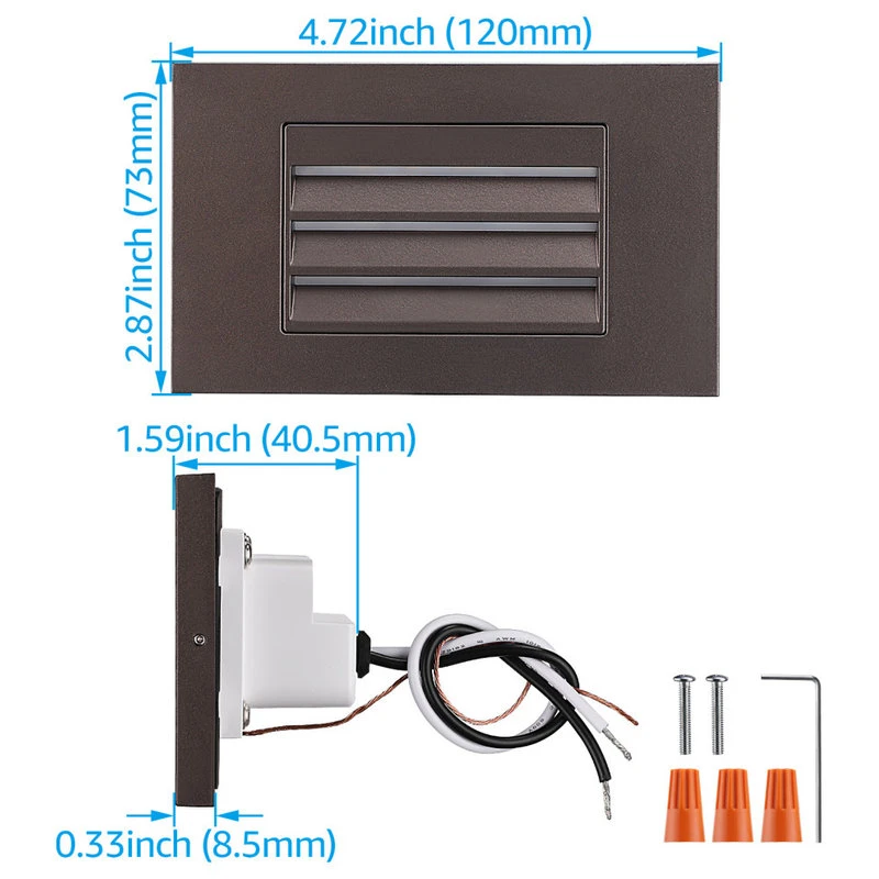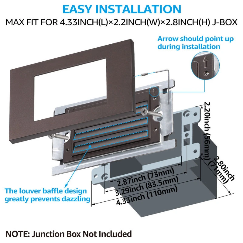 - Lighting up a larger area compared to traditional step lights, this step light’s unique louver baffle design eliminates annoying glare and dazzling.