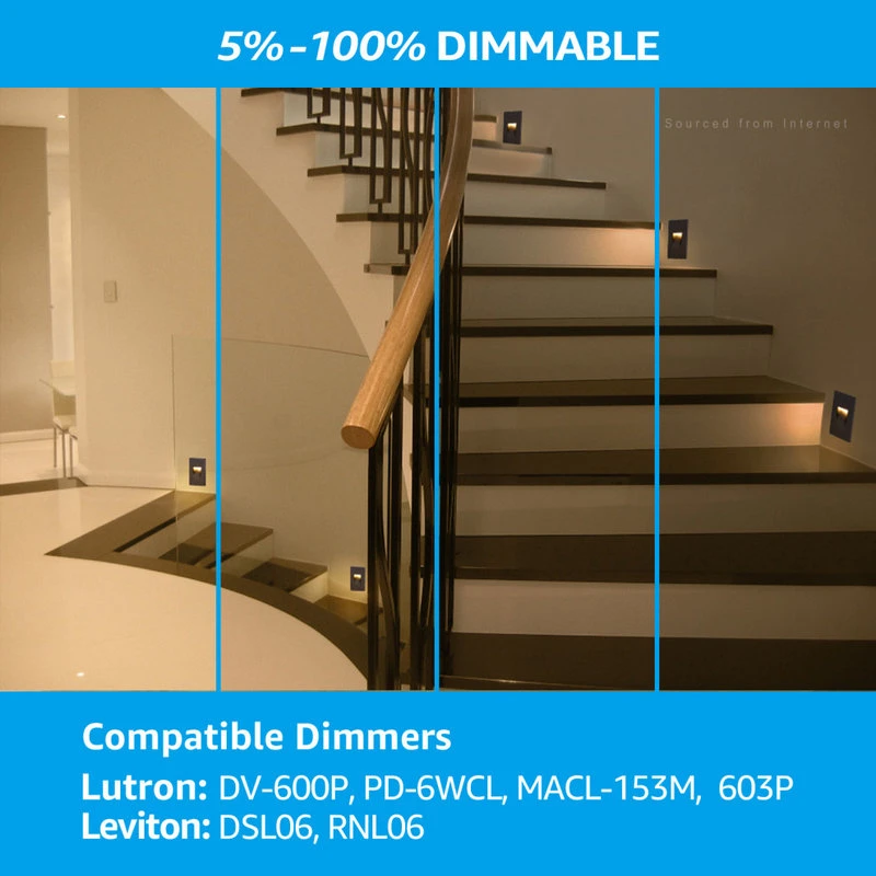 If you have ever been troubled by traversing dark hallways and staircases at night or are just considering adding some decorative lighting to your staircases, then our newly launched 3.5W 120V dimmable LED step light is the perfect choice for you.